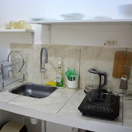 Along with tea/coffee making equipment, self-catering facilities in a kitchen include a microwave oven and a fridge. The nearest Trufis a San Julian bus stop is within a 500-metre distance of the apartment.